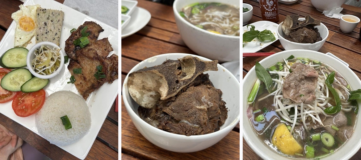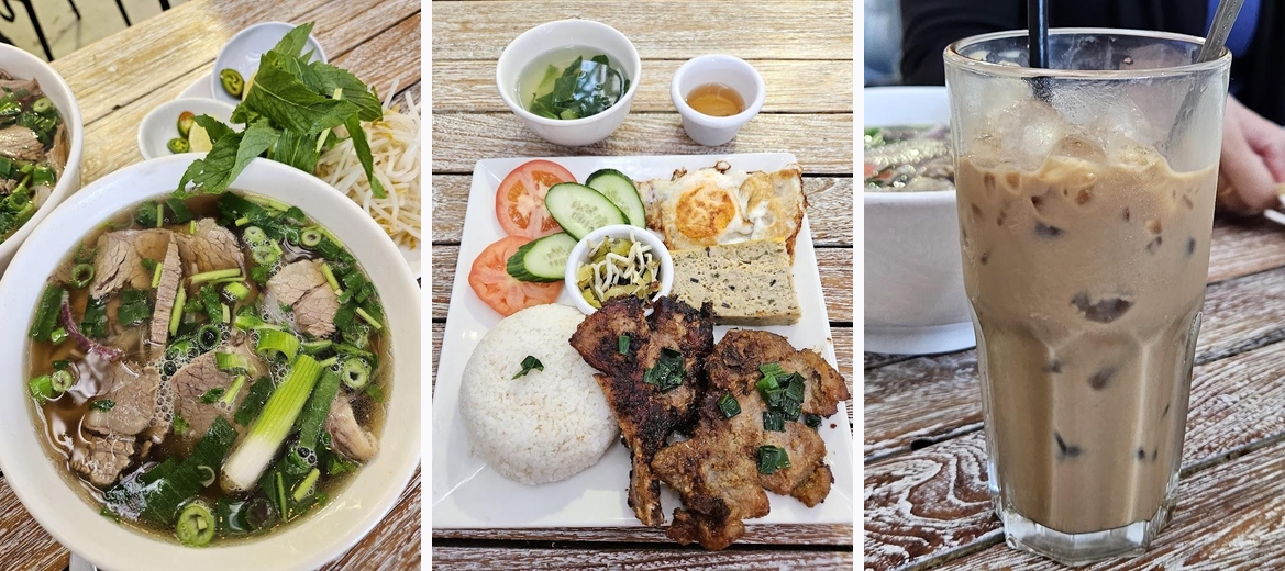 Don’t miss the Phở Đặc Biệt, beef noodle soup, and grilled pork on rice, which are crowd favorites.